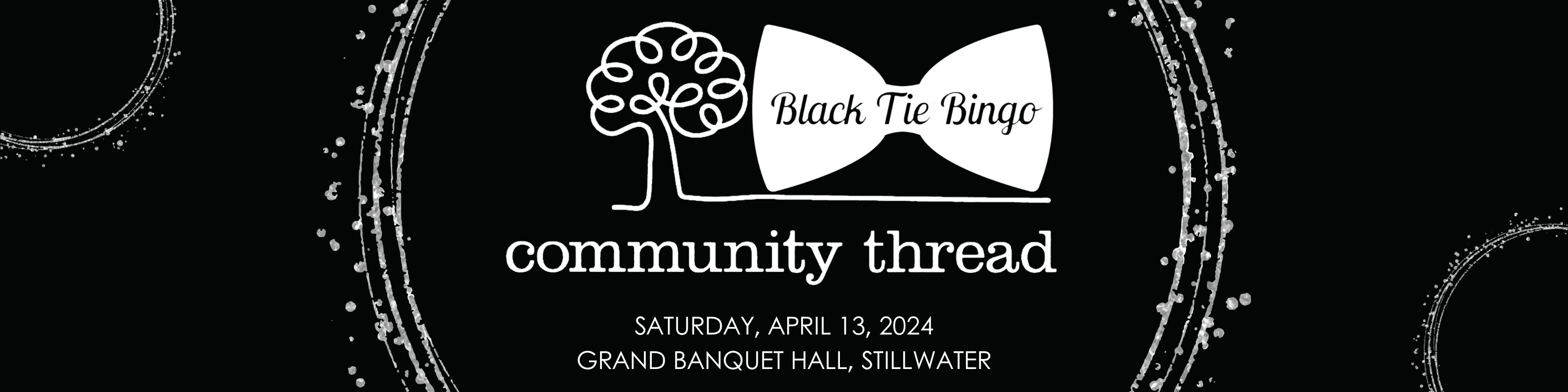 Put on your best formal attire and join Community Thread at our seventh annual Black Tie Bingo event! On Saturday, April 13, over 200 guests will gather at The Grand Banquet Hall in Stillwater for this fun and memorable event. Guests will enjoy a cocktail hour with delicious hors d'oeuvres and desserts, music, interactive games with prizes galore, and an online auction. A cash bar will be available.