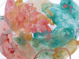 Her paintings serve as reflections of her soul's landscape - they are visual records of her emotions, findings, and her everyday thoughts. She chooses to explore these ideas through her relationship with the medium, while constantly expressing herself through the process of painting.