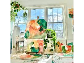 She spends her days juggling the roles of mother and artist while painting from her in-home studio.