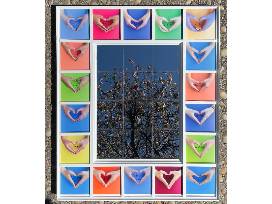 What do you say to yourself when you look in the mirror? The fifth graders of Chris' class want to share the confidence-boosting words they use when they see their own reflections. This beautiful and unique piece features mirror tiles framed with photos of each student's heart-shaped hands surrounding their chosen word of affirmation. Channel your inner Stuart Smalley, or give your family a daily positive reminder, by hanging this handmade, one-of-a-kind mirror in your home. Mirror measures approximately 52"x44".