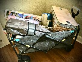 Be all ready for summer fun with this assortment of essentials! Enjoy a comfortable and relaxing day at the beach with a pop-up beach tent, portable shade umbrella, beach towels, and 4 folding chairs. Make your next family picnic an enjoyable feast with your new oversized picnic blanket, outdoor table in a bag, picnic basket, utensils and large cooler bag. All of these goodies come in a collapsible wagon so you can transport your gear to all your summer adventures!