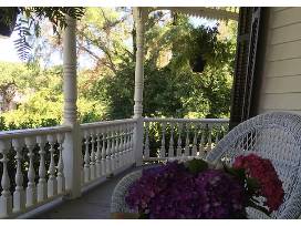 The Green Room - Two twin beds and two twin-over-full bunk beds, large bay windows, and a gas fireplace.
