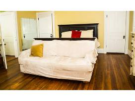 Master Bedroom with King size bed and 5-piece bath including a huge clawfoot tub, spacious room with plenty of windows and a gas fireplace.