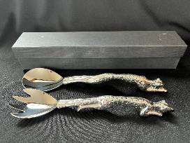 This is a stunning stainless steel and pewter salad spoon set from the Diana Carmichael collection. This handcrafted collection consists of timeless lead-free pewter tableware and accessories, all inspired by traditional African life and art.