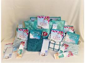 Make this your next book club choice! Best-selling author Susan Mallery has donated this fantastic package which includes 12 signed copies of her latest novel "The Summer Getaway" (4.7 stars on Amazon) along with a virtual book club discussion with the author at a time and date TBD. The NY Journal of Books reports that "The Summer Getaway is a reflective and moving tale of family ties." Also included in the package are 12 Susan Mallery pens, bookmarks, and notepads, 12 kitchen towels, and one beachbag.