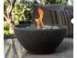 This fire bowl is the perfect way to create warmth and ambiance indoors or outdoors. Power your fire bowl with a clean-burning and odorless Gel Fuel canister that provides a golden 7" smoke-free flame at 3000 BTUs for up to 3 hours. Comes complete with a hand-cast fire bowl (5" high, 10.65" across), smooth river stones, and three cans of Gel Fuel. Also included in this item are 8 marshmallow roasting forks, marshmallows, graham crackers, chocolate, and a package of Girl Scouts Smores cookies