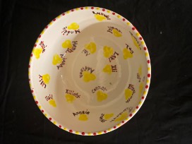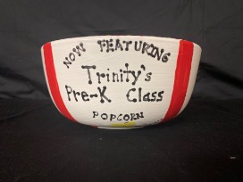 You will want this popcorn bowl for your next family movie night!! Made with student thumb-prints from Mrs. Cochran's Pre-K class.