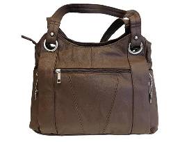 Brown Roma Leathers Tote Bag featuring a large main compartment, Front compartment with credit slots and ID window, Dual entry gun concealment compartment w/ YKK lockable zipper. Size: 12"x 9½" 3"