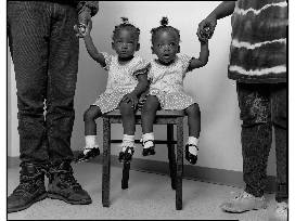 Mary Ellen Mark, Twins Vashira and Tashira at the Suffolk HELP Shelter. Bellport, New York, 1993.
