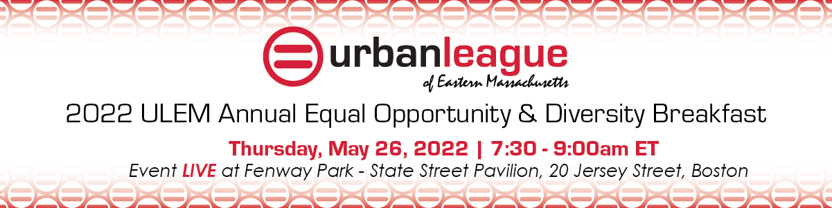 The Urban League of Eastern Massachusetts welcomes you to our Fifth Annual Equal Opportunity and Diversity Breakfast: Changing Lives and Empowering Communities. It will be a dynamic in-person event highlighting the 100-year history of the Urban League of Eastern Massachusetts. There will be recognition of local businesses and community leaders as well as presentations from ULEM's leadership, sharing the current activities and future vision of your Urban League.