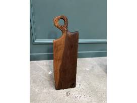 Approximately L 24" X W 10" X H 5/8". Handmade and shaped Walnut sealed with a food safe wax/oil.