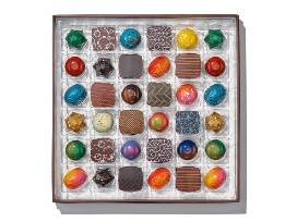Gift box contains 36 gourmet chocolate bonbons from their signature collection. With flavors like their ever-popular Fleur de Sel Caramel, Fresh Lemon, Champagne, and Macadamia Praline, this gift box has a favorite bonbon for any chocolate lover.