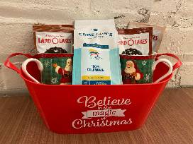 - "Believe in the Magic of Christmas" red tub