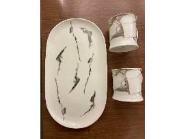 - 2 white marble mugs