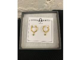 These dangle hoops are designed by Sierra Otto, a Kansas City based jewelry designer. They are made using 18k gold vermeil & natural turquoise.