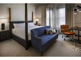 Get the basics with upgrades you definitely want. A beautifully sunlit room with more space. This room highlights Crossroads' historic charm with exposed brick and beams. Room also features luxurious amenities, design pieces that highlight local makers, a working desk, and sofa by the window.