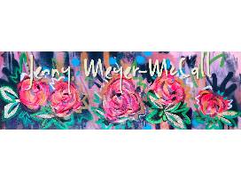 Jenny Meyer-McCall is creating whimsical floral paintings, telling a story of humor and quirky adventures within an abstract composition. Exploring the modern domestic through layers of thick acrylic paint, unexpected elements, and childhood nostalgia. Custom paintings incorporating your personal heirlooms and memories into a one-of-a-kind treasured painting.