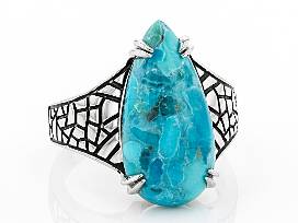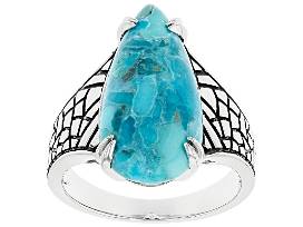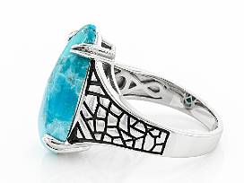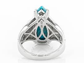 - Blue Turquoise Rhodium Over Sterling Silver Solitaire Ring (size 7)