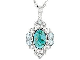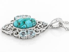 - Blue Turquoise Rhodium Over Silver Pendant Chain 1.16ctw