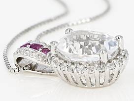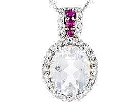 White Crystal Quartz Rhodium Over Sterling Silver Pendant with Chain 4.38ctw (18 inch necklace)