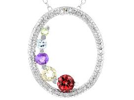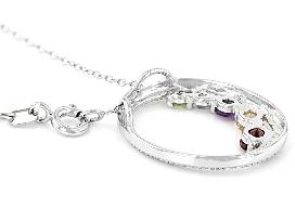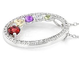 - Multi Stone Rhodium Over Silver Necklace 0.62ctw (Garnet, Amethyst, Citrine, Topaz and Peridot)