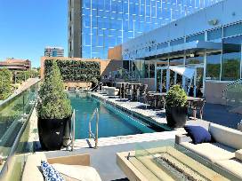 Located in the heart of Kansas City's best upscale shopping at Country Club Plaza, The Fontaine is a sophisticated, new destination for business and leisure travel. Walk across custom tile mosaics inset into the gleaming marble floor, enjoy intricately carved wood paneling and playful Renaissance artwork adorning the walls and marvel at the hand-blown Venetian glass chandeliers floating overhead. Each detail is designed to delight the senses while setting a scene of serene sophistication-a place in which guests are both dazzled and utterly relaxed.