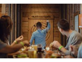 Experience top-rated Kansas City axe throwing! Blade & Timber was founded right here in Kansas City, now with two locations. Both locations now offer cocktails, wine and beer.