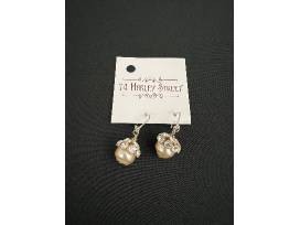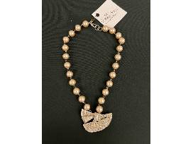 Gorgeous 1940's rhinestone dress clip on vintage glass pearls with earrings.