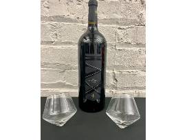 Coopers Hawk 1.5 Liters Anniversary blend and (2) rolling stemless wine glasses.
