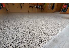 - Decorative epoxy flake floor system with polyaspartic top coat