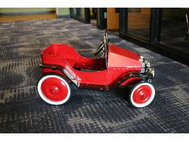 This sleek red racer is sure to delight the kids or grandkids. Powered by energy, your kiddos are sure to sleep well after playing in "Little Speedy." Package includes: Red Push-Pedal Cart a handmade overnight pillow with book pocket, a children's book "Cars," and 3 toys action figures from the Disney movie "Cars."