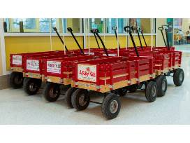 With your philanthropic support, you or your group can name a wagon. A license plate acknowledging your contribution will be attached to the back of a wagon and you will receive a duplicate copy of the plate. Wagons are named for the duration of their circulation at the hospital, up to one year. Based on inventory, named wagons may be new or gently used.