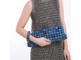 Recycled from post-consumer fabric scraps, each of the Lucky Buttons that make up the Reina is hand-cut and hand-sewn.