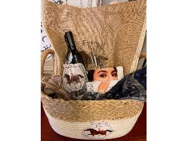 A gift basket from Trotting Fox Boutique in Jacksonville with a Vinebrella (umbrella in a bottle!), Redale makeup, French scarf and $50 gift card. No expiration.