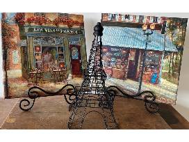 These Paris themed items will add to any décor with color, drama and flair. Qui, enjoy these wonderful accent pieces of a Paris Patisserie and Wine Shop. Bring the romance to your space with this 'Lovers in Paris Eiffel Tower' giclee art print and Eiffel Tower metal statue and décor.