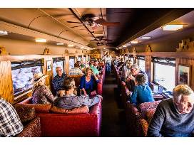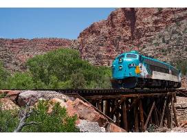 All aboard the Verde Canyon Railroad in Clarkdale, Arizona, with two adult first class fares! This four-hour journey through the majestic red rock canyon, along the rich riparian habitat of the upper Verde River, will take you through a landscape only accessible by foot or trail. You will travel in restored mid-1900 cars, climate-controlled for your comfort. From the moment you step foot on one of their meticulously refurbished train cars, you and your family will feel like you've been transported to a simpler, more leisurely time before all the distractions and annoyances of our modern world. Breathe deep, order a drink and relax as you glide along on a 20-mile journey through 100 years of history while still enjoying modern creature comforts like climate control, comfortable seating and thoughtful decor.