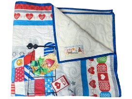 Whether a quilt is spread over your lap, folded at the end of your bed, hanging over a quilt rack -- it is best to be used and enjoyed. This auction quilt is very cute, it is 40x34 which offers comfort for kiddos who like to snuggle, especially when not feeling well.