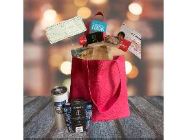 Enjoy a day of shopping and lunch in Kirkwood and beyond with this pink bag stuffed with a soft scarf, an iced coffee sleeve, and giftcards: