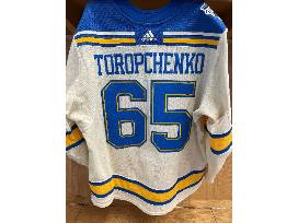 Bid on #65 Alexei Toropchenko's locker room issued jersey from the 2nd period of the 2022 Discover NHL Winter Classic at Target Field in Minneapolis, MN on January 1, 2022.