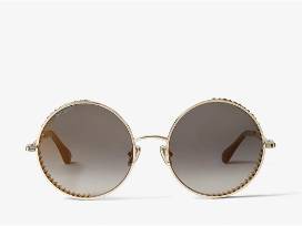 Showcasing effortless sophistication, these GOLDY sunglasses arrive in light gold and feature a round silhouette fitted with brown shaded lenses and silver mirror effect. Made in Italy, this oversized pair is embellished with 64 black Swarovski crystals that are applied by hand on the side spoilers and lug. Expect comfort and distinction with this pair of Jimmy Choo