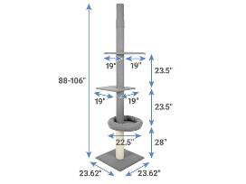 Give your feline fun from top to bottom with the Frisco 3-Level Floor to Ceiling Heavy Duty Cat Tower in grey. That's three tiers of furry fun for climbing, stretching, and relaxing. The sisal wrapped post encourage healthy scratching so you don't have to worry about claws on the furniture. Plus the bolster bed perch is the perfect place for your kitty to rest their head during those cat naps. This tower is secured to the ceiling with a tension rod, so you can feel good knowing your cat can play all day on this sturdy, durable structure. Floor to ceiling design is adjustable from 88" - 106".