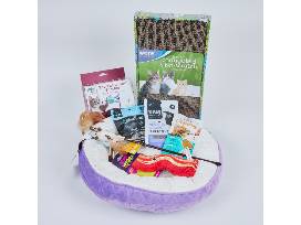 Spoil your feline with a Pure Comfort Round Velvet 18" Purple Pet Bed, a Ware Sit-N-Scratch Double Cardboard Cat Scratcher, a Doc & Phoebe's Twirly Bird Treat Dispenser Cat Toy, Catit Creamy Lickable Tuna Recipe Cat Treats, Kiwi Kitchens Raw Freeze-Dried Venison Recipe Cat Treats, OurPets Twinkle Teaser Cat Wand Toy, Vital Essentials Minnows Freeze-Dried Cat Treats, and a Mad Cat Big Bacon Kicker Cat Toy. Not everything you need? Then pick up more great items with a bonus $50 Pet Food Express gift card.