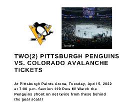Two(2) Pittsburgh Penguins vs. Colorado Avalanche tickets