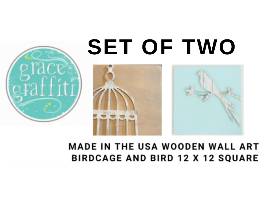 Grace Graffiti made in the USA wooden wall art birdcage and bird 12x12 square set of two