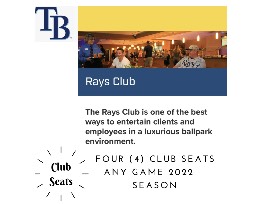 Tickets are comfortably located in the Rays Club on the first base side of the park