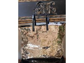 Open Top Gold Sequin Paillettes/Patent Leather Handles Tote