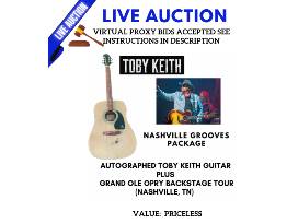 AUTOGRAPHED TOBY KEITH EPIPHONE ACOUSTIC GUITAR PLUS BACKSTAGE TOUR OF THE GRAND OLE OPRY IN NASHVILLE, TN