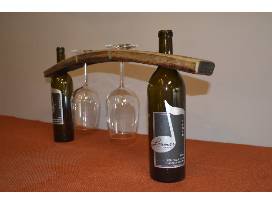 - Medium Bottle Butler made from King Barrel- holds two bottles of wine and two stemmed wine glasses.
