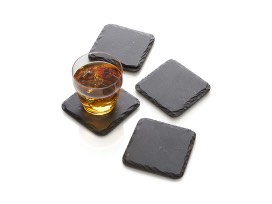 - Handcrafted charcoal Slate Coasters (Set of 4: 4"Wx4"H)