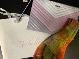 Rebecca Minkoff Gorgoeus oversized Pink Ombre Leather Clutch with beautiful silk floral scarf. Scarf is $75 and The Retro Pastel Clutch $155